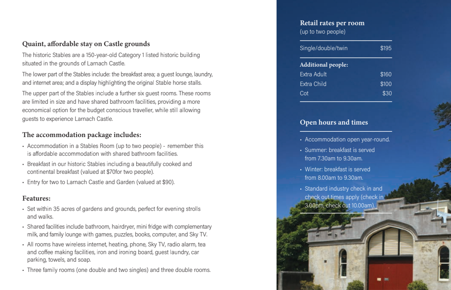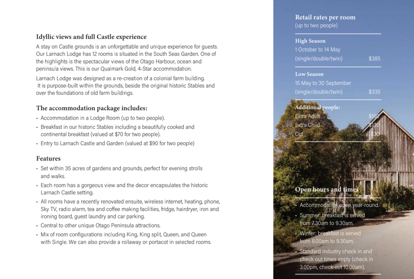 We’ll have buses available, leaving Dunedin Railway Station to take you to and from Larnach Castle.