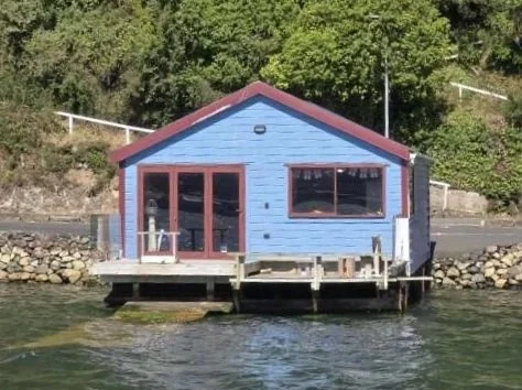 Fifth boat shed (Whare Waka Rima) down from the Andersons Bay causeway. Look for this pic if coming by water.